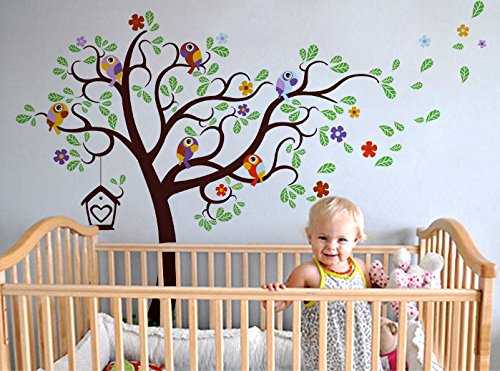 Pop Decors PT-0230-Va Wall Decal and Sticker, Nursery Tree with Colorful Parrots, 90"