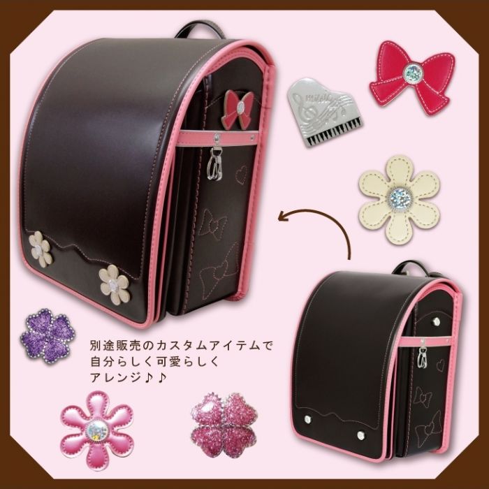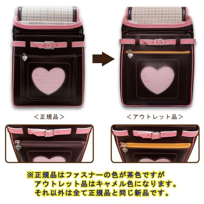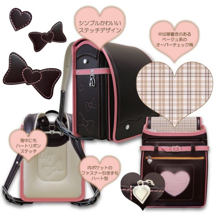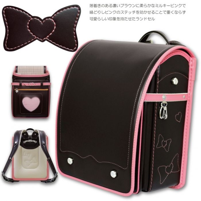 특별한 사정이 있음(아울렛) ☆2017년도 모델☆리본&하트 스텟치☆손잡이부 클라리노F란도셀☆소녀 브라운×밀키 핑크 A4플랫 파일 대응 일본