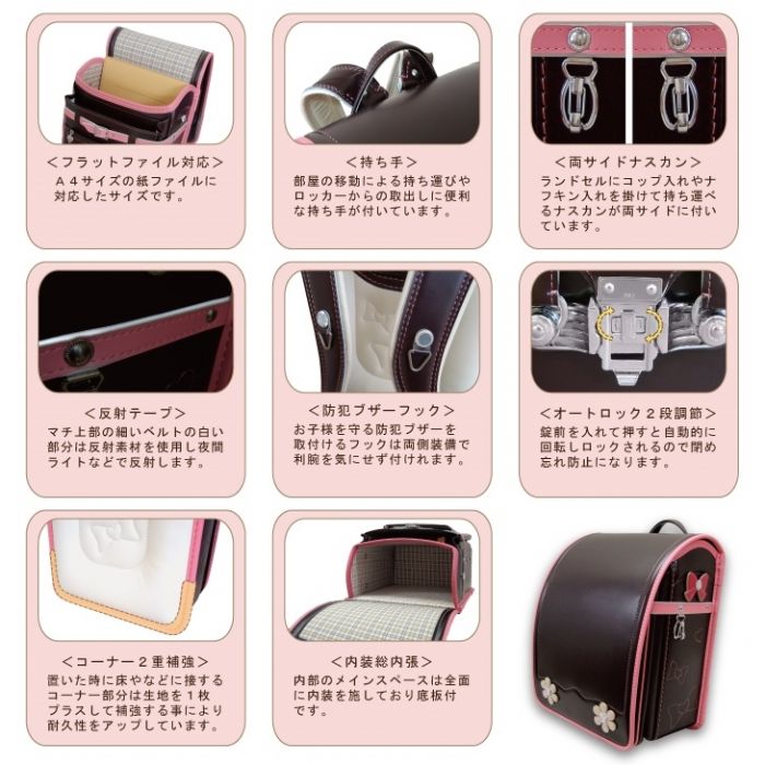 ◎란도세루(초등학생이 어깨에 매는 가방)의 양싸이드에는 나스카《》가 각 하나씩 붙어 편리,그리고 양방의 어깨 벨트에는 방범 buzzer 등이 매어 달리는 D캔부.게다가(더구나) 이D캔에게 사용 하고 있는 대갈못과 란도세루(초등학생이 어깨에 매는 가방) (주식,순무우먹이)카브《세》부분하의 대갈못은 야간에 차의 라이트 등에서 반사하는 반사 대갈못이 되고 있습니다.또한란도세루(초등학생이 어깨에 매는 가방) 중앙의 대부분으로도 반사 테이프를 사용♪♪