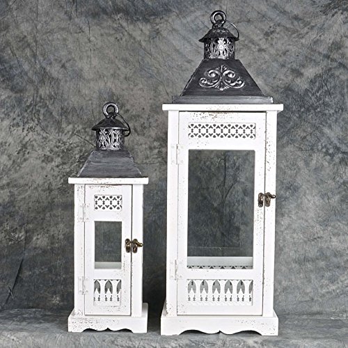 -. Title : Antique Style Wooden Lanterns -- Windproof Light Wrought -- Set of 2 -- Washed White