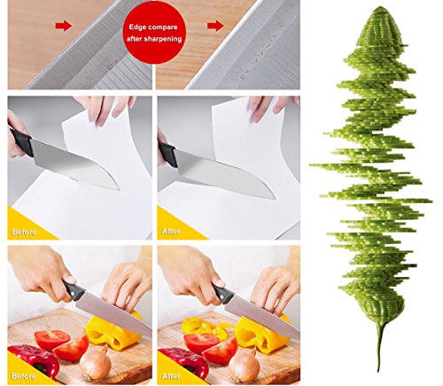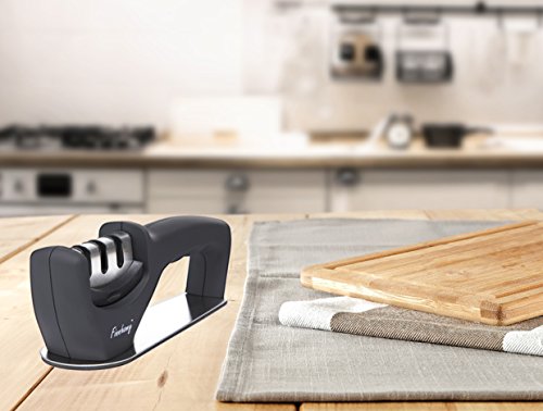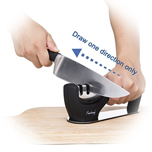 EFFECTIVELY AND EASY TO USE: Finnhomy knife sharpener make it a lot easier to sharpen your kitchen knives, only pull 3 or 5 times through the sharpening slot. the blade will be sharpen as brand new, quick and easy to operate.