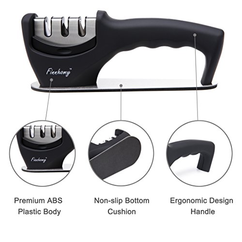 Finnhomy Professional Knife Sharpener for Straight and Serrated Knives, 3 Stage Tungsten, Diamond,Ceramic Sharpening Slot,Manual with Non-slip Bottom Cushion for Pocket,Kitchen Knife,Black