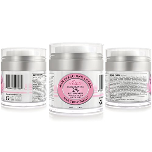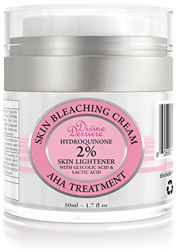 Divine Derriere Skin Lightening 2% Hydroquinone Bleaching Cream with 6% AHA Glycolic Acid and Lactic Acid - Fade Dark Spots, Freckles, Hyperpigmentation, Melasma and Discolorations. 1.7 oz / 50ml