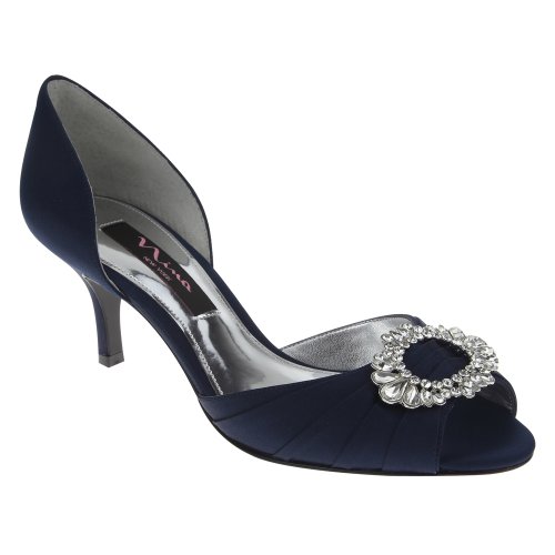 Feel regal the instant you slip into the Nina Crystah sandal, a d'Orsay style that's fit for a queen. Pleated at the forefoot, this women's dress sandal has a metallic satin fabric upper with a crystal buckle, or brooch, positioned above the pretty open toe. The kitten-inspired heel is self-wrapped for a streamlined look. The Nina Crystah d'Orsay dress sandal has a lightly cushioned footbed for comfort atop a regenerated leather sole to allow you to glide effortlessly through every memorable event.