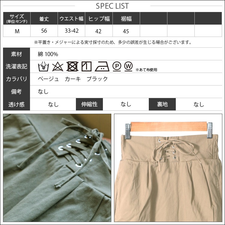 実寸:着丈 56cm ウエスト幅 33-42cm ヒップ幅 42cm 裾幅 45cm