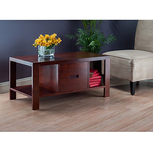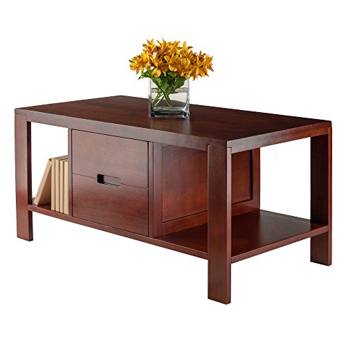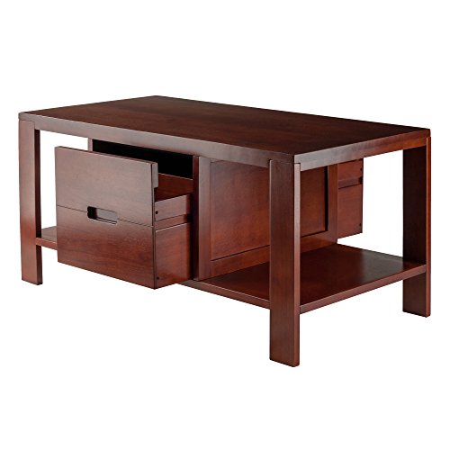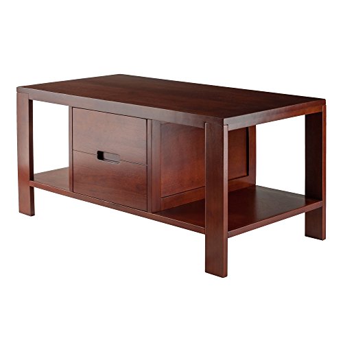 -. Feature : Dimensions: 38.03W x 19.69D x 18.11H in. / Made of solid and composite wood / Walnut finish / 2 drawers, 2 open shelves / Notched drawer pull