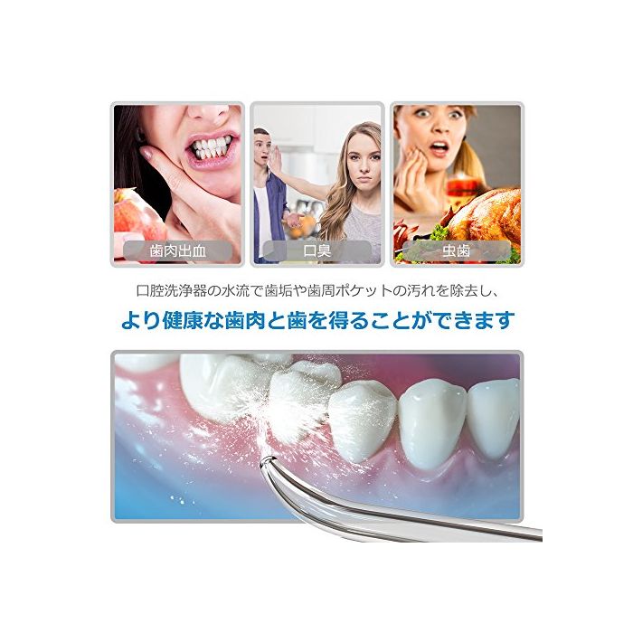 【치석을 제거한다】치석은 치아의 부패,치고기의 출혈,및 구취를 일으킵니다.구강 세정기에 치석의 99%를 없애고, 보다 건강인 잇몸과 이에 보내어 주십시오