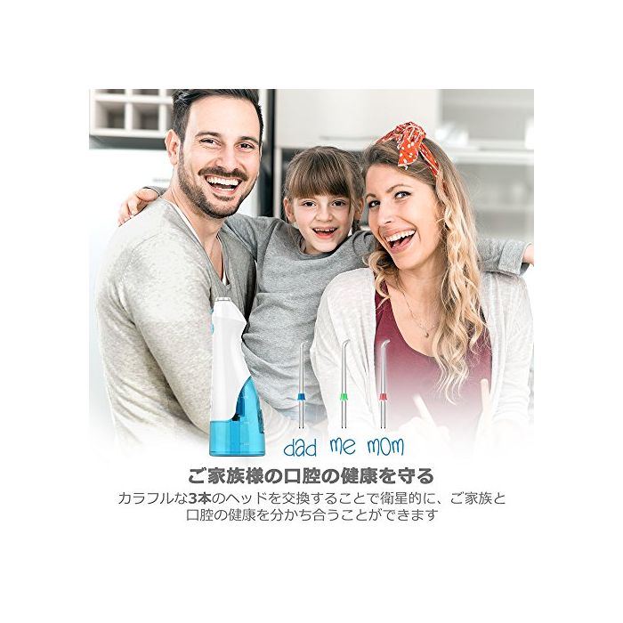 【가족 전원에게】이 구강 세정기 세트에는,마마,파파,그리고 당신을 위해서 3개의 제트 팁(칩)가 붙고 있습니다.또한실용적인 내구성이 있는 여행용 파우치에,외출처에서도 완벽한 클리닝이 가능합니다