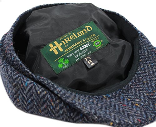 Studio : John Hanly Co. Publisher : John Hanly Co. Binding : Apparel Product Description Beautifully crafted, this tweed cap is a perfect accessory to compliment any outfit! The 8 piece cap is a lovely navy blue and grey herringbone with flecks of subtle colors throughout giving the classic herringbone look a touch of Donegal flair. This cap is made from 8 patches brought together by a button at the peak of the hat. It has an integrated bill and a peak that extends and curves to shade your eyes from the various elements or inquiring minds!Crafted from 100% wool and lined for comfort and durability by John Hanly in Co. Tipperary, Ireland. The Hanly Family has been a craftsman of fine woolens since '93 -- 1893! It just doesn't go out of style! Add this gorgeous men's Irish accessory to your cart now! This cap is sure to make a few eyes smile!The sizes for the Hanly Hats are Small (6-7/8) = 56cm or 22", Medium (7-1/8) = 58cm or 22-3/4" , Large (7-3/8) = 60cm or 23-1/2", XL (7-5/8) = 62cm or 24-1/4", or 2XL (7-7/8) = 64cm or 24.2" measuring from the widest point of the head. 0