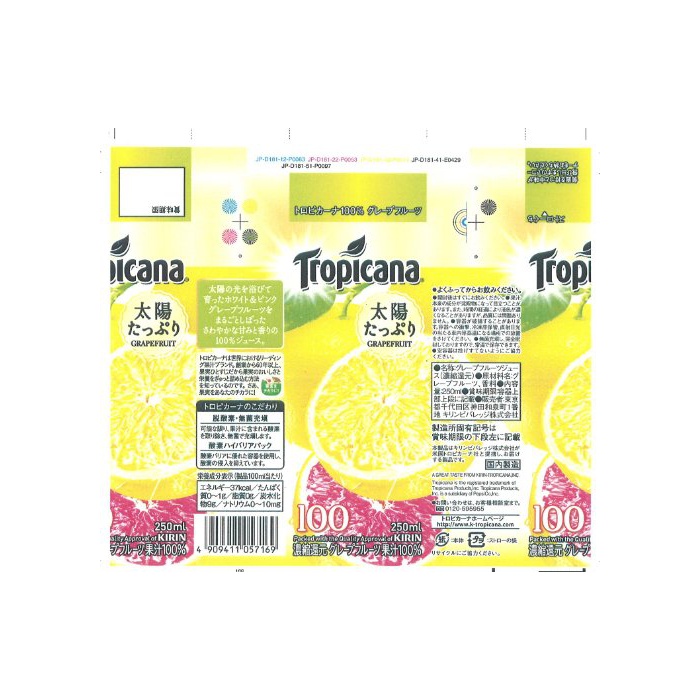 원본상품명:トロピカ?ナ 100% グレ?プフル?ツ 250ml×24本