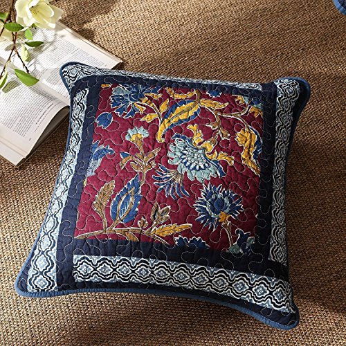 Get lost in the mystical Bohemian Midnight Ocean Blue Sea Cushion Covers - Bright Vibrant Multi-Color Navy Burgundy Plum Purple Floral Paisley Garden Print accented with a multi-colored floral navy blue patchwork design. Included are two Cushion Covers. Medium dark toned, this set will add a touch of excitement to any room. DaDa Bedding's cushion covers and throw pillow covers are intricately woven with beautiful designs made to improve your living space in a comfortable and warming way. We hope to give your rooms a vibrant and whimsical atmosphere with our covers. Zipper is hidden underneath the detail flap on reverse side, which makes the insertion easy. Cover holds 20 inches pillow insert (not included). Makes a Gorgeous Gift! Included - Two Pieces Dimensions - 18" x 18" Square Also sell matching Quilt Sets sold separately to match these cushion cover/accent covers beautifully! ♡ Washing Care Instructions: Machine Wash Cold, Do not Bleach, Tumble Dry Low, and Remove Promptly.Feature