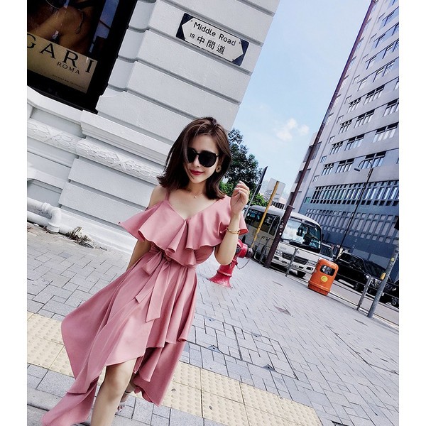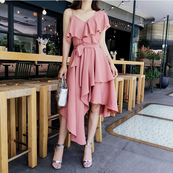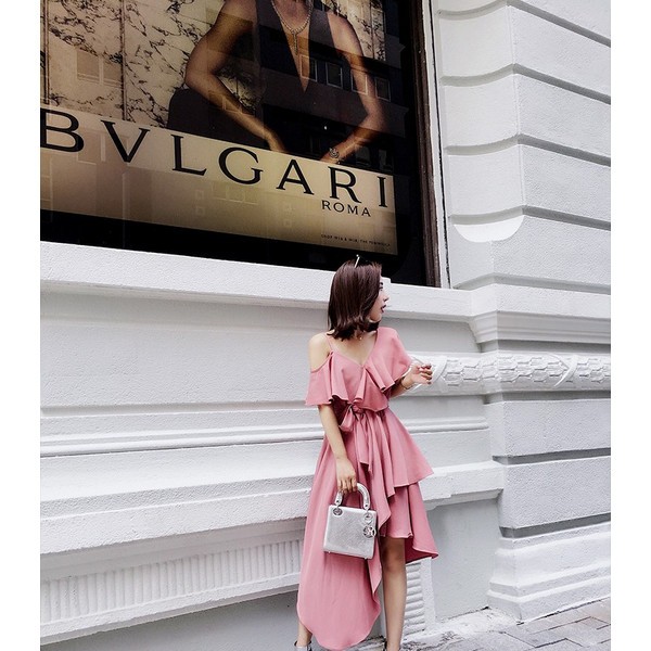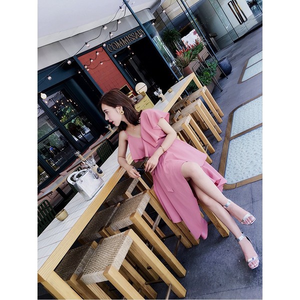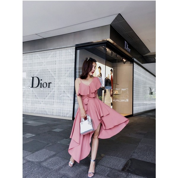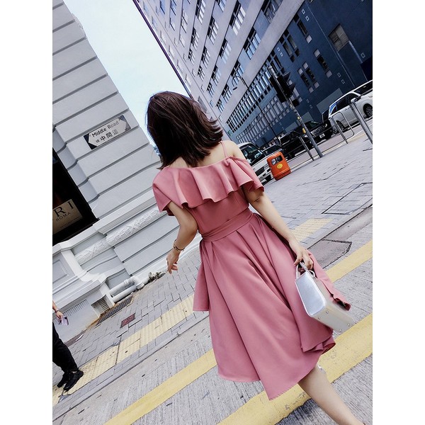 フリルとウエストリボンが可愛いワンピース。