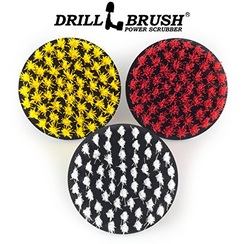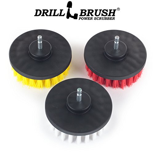 3 piece drill powered scrubbing kit. part # 4in-Lim-Short-WH-YEL-RD