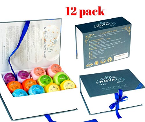- ♥ SUPERIOR VALUE: Twelve unique bath bombs (3.5 oz Greater than golf-ball size) instead of the standard 6 and two times the aroma compared to other brands. with cocoa and Shea butter, including natural additives in a PREMIUM GIFT BOX. ONE HUNDRED PERCENT SATISFACTION - With our no-questions-asked, we guarantee your satisfaction; enjoy your next bath relaxing in luxury and comfort with the NOYALI BATH BOMBS – Place your order today – Makes a perfect gift for that someone special in your life.