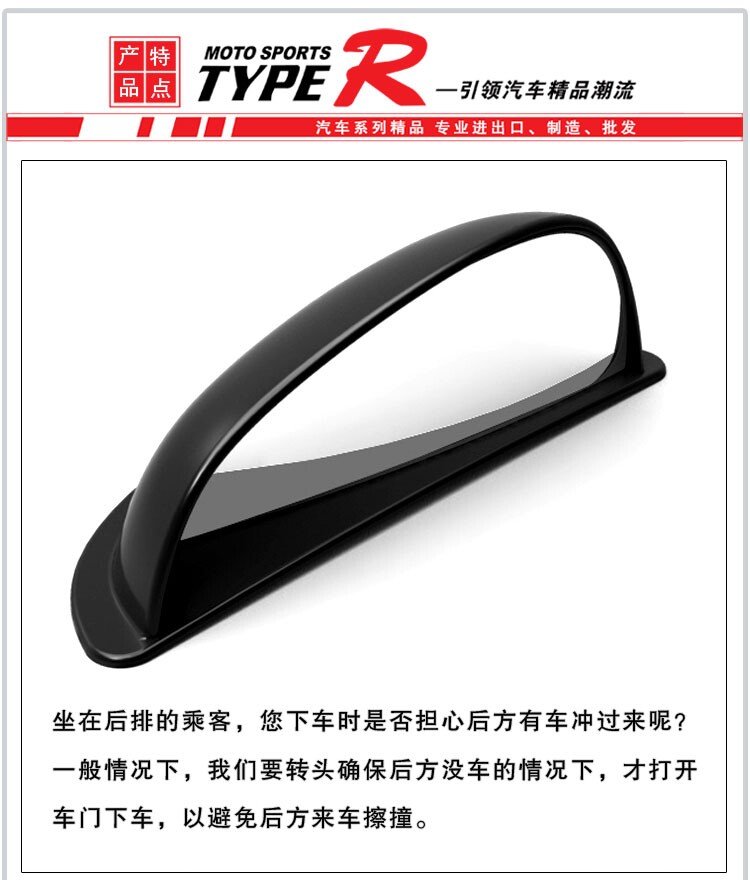 In the rear passengers, if you worry about when you get off the rear of a car rushing it? Under normal circumstances, we do not want the car turned around and ensuring the rear of the case, it opened the door to get off to the car to avoid rear collision, but doing so is a waste of time to have a lot of blind spots that we can not see; which Rearview Mirror solve this trouble, make sure to get off more secure.