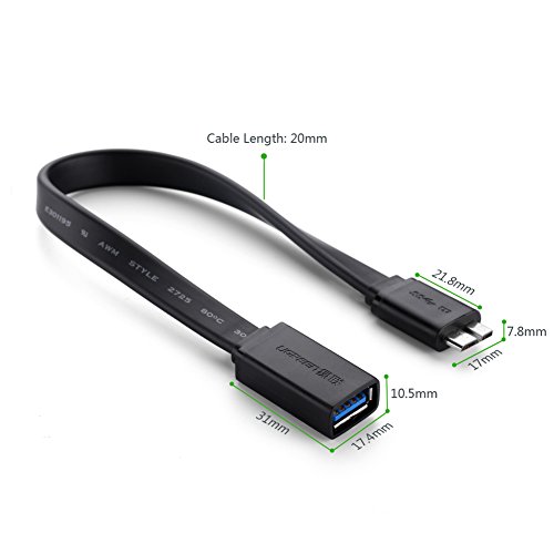 UGREEN Micro USB 3.0 OTG Cable Flat On The Go Adapter Micro USB to USB Female for Android Samsung Galaxy S5, Note 3, Note Pro 12.2, Tab Pro 12.2, Lenovo Yoga 8, 8 inch Black