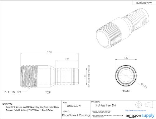 Dixon RST10 Stainless Steel 316 Hose Fitting, King Combination Nipple Threaded End with No Knurl, 1" NPT Male x 1" Hose ID Barbed