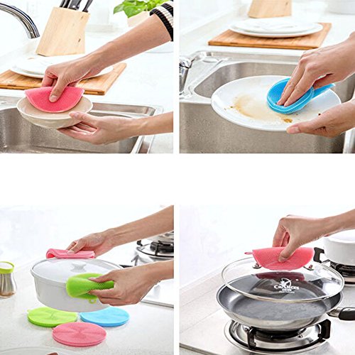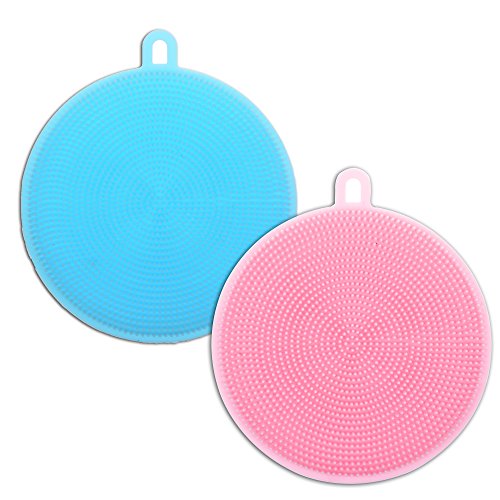 COSMOS Pack of 2 Silicone Round Dish Scrubber Brush for Dish Washing, Fruit and Vegetable Washing