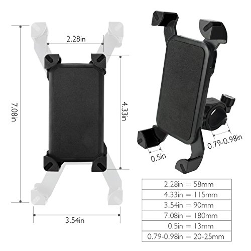 BIKE PHONE MOUNT : Bicycle Handlebar diameter size 0.79in-0.98in(20mm-25mm) fits most bicycle and motorcycle handlebar diameters
