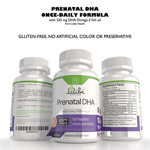 -. Title : Best Prenatal DHA Supplement for Women 820mg Omega 3 Fish Oil as 325mg Prenatal DHA & 430mg Prenatal EPA Essential Fatty Acids for Baby Before During After Pregnancy by Lilibe Health 100% Mercury Free