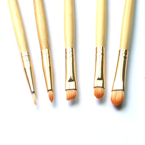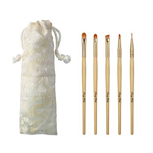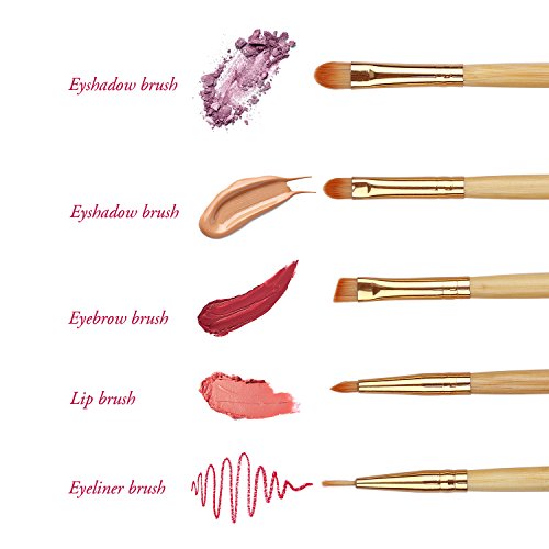 Makeup Eye Brush Set - 5 Pcs Bamboo Handle Soft Synthetic Eyeshadow Eyebrow Eyeliner Concelaer Blending Cosmetic Brushes