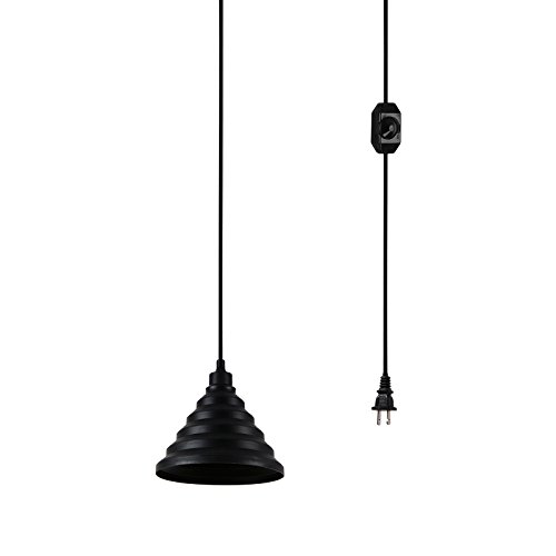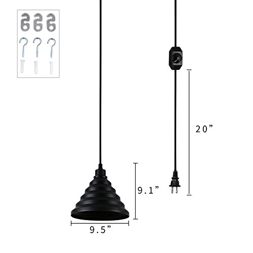 Plug-in Ceiling Pendant Lights with Foldable Silicone Lampshade, 15 Ft Hanging Cord and Dimmer On/Off Switch (Black)