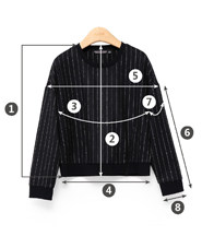 尺码 ①前衣长 ②后中长 ③胸围 ④下摆围 ⑤肩宽 ⑥袖长 ⑦袖臂围 ⑧袖口围