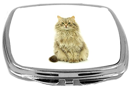 Rikki Knight Persian Cat Sitting on White Background Design Compact Mirror, 17 Ounce