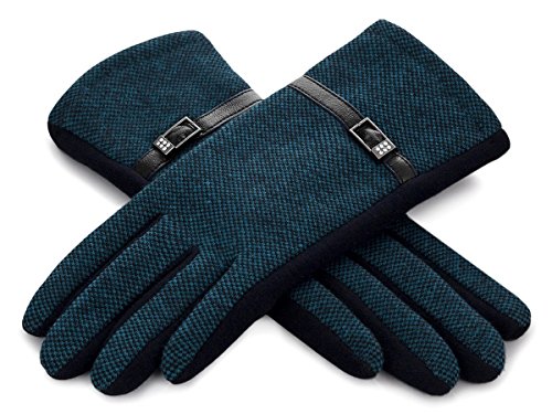 Binding : Apparel Product Description Winter gloves dedicated to elegant women. Available in quiet colours and simple design. They have a decorative leather strap with a buckle on which there are six small crystals. With them, the gloves gain a luxurious look. It is an essential addition to chic winter outfits. 0