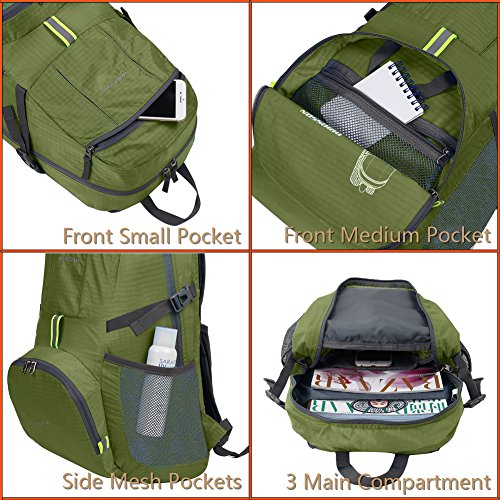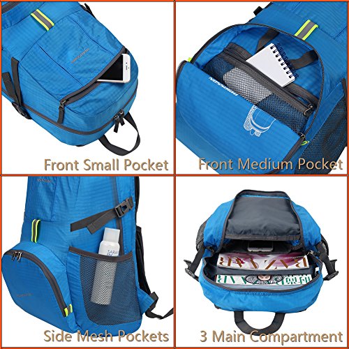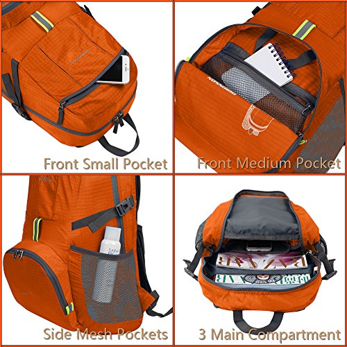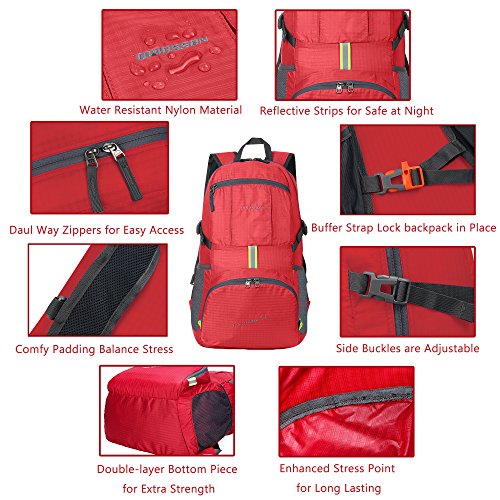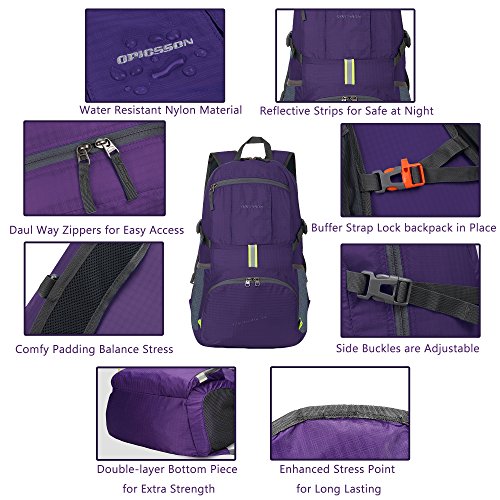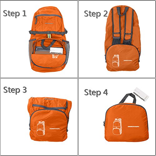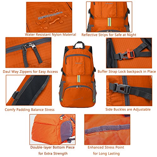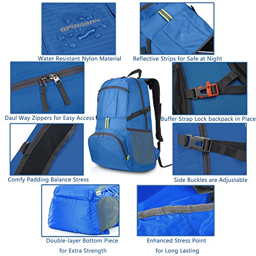 ORICSSON ultralight foldable water-resistant Backpack can be Fold into zippered inner pocket to fit anywhere, unfold from pocket to backpack. Perfect for day-to-day use or trips, vacation, travel, school, camping, hiking, shopping, and great gift for everyone.