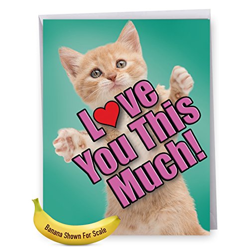 J6610GMDG Jumbo Mother's Day Card: Cat Love You This Much - Featuring a Sweet Cat Holding Arms Wide to Show You How Much It Loves You, With Envelope (Extra Large Version: 8.5'' x 11'')