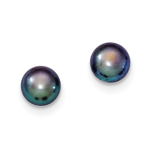 Solid 925 Sterling Silver 7-8mm Black FW Cultured Button Simulated Pearl Stud Earrings