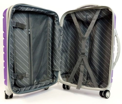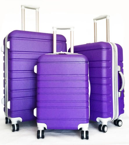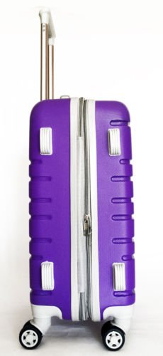 -. Feature : Color: Purple/Violet, Gray and Black / Pattern: Solid/Lines / Material: ABS / Large Size: 29" x 18" x 12" (+2" expandable) / Medium Size: 25" x 16" x 10" (+2" expandable)/ Small Size: 21" x 14" x 8" (+2" expandable) / Large Weight: 11 lbs/ Medium Weight: 9 lbs/ Small Weight: 7 lbs