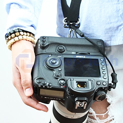 Secures camera with a backup connection between camera and camera sling strap, provides peace of mind and extra security in case the main strap attachment fails
