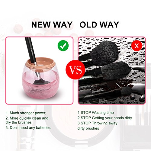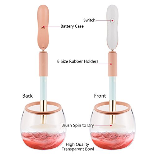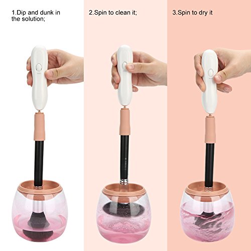 - Simple & Convenient--Just needs 3 steps.1.Dip and Dunk 2.Spin to Rinse 3.Spin to Dry.Then your all size makeup brushes can be clean and dry in seconds time.