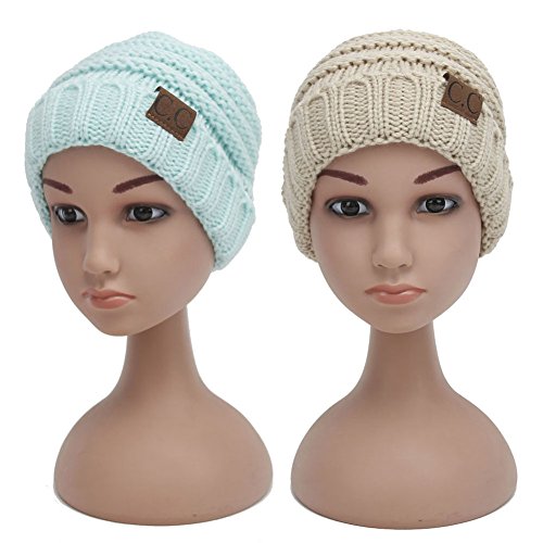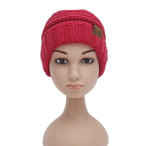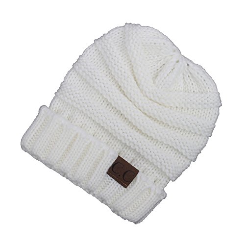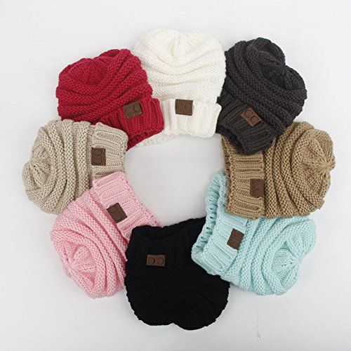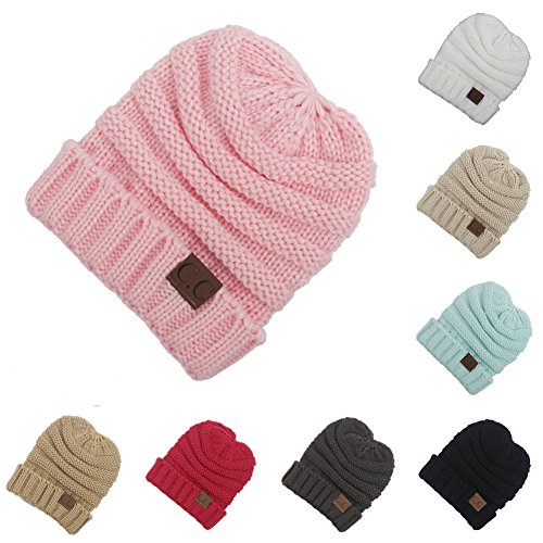 | ACTLATI Children's Ribbed Ski Winter Crochet Hat with CC Wool Knit Beanie Winter Outdoor Hemmin... |