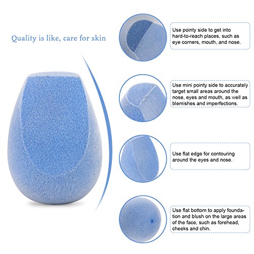 - 💡💡EXCELLENT FOR BOTH DRY AND WET APPLICATIONS. This is a great choice for Beauticians from Amateurs to Pros. When use in Wet: absorb water fully first, then squeeze out some water, apply creamy or liquid products; when use in Dry, dip powdery cosmetics, the fluff around the sponge is perfect for the powder, such as foundation, loose powder etc.