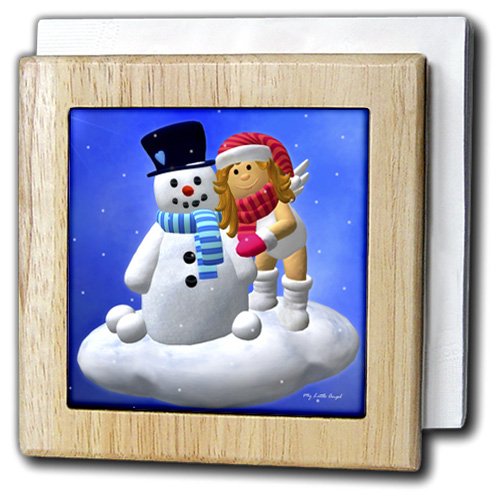 3dRose nh_30590_1 Angel with Snowman Wall Art, Natural