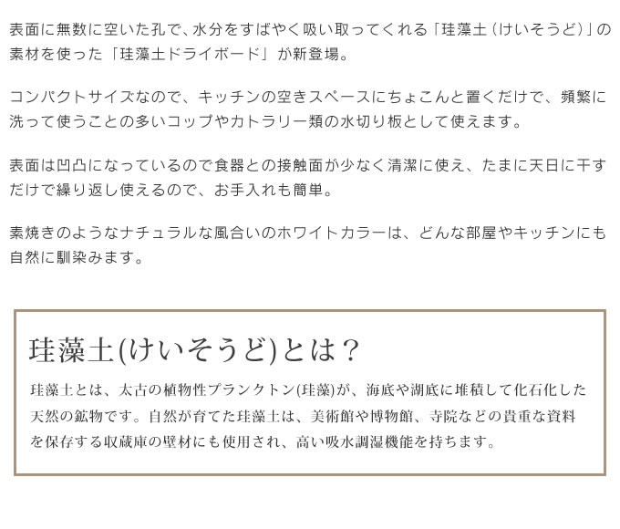 ポイントバスマットで大人気の珪藻土シリーズからキッチン用品が新登場。