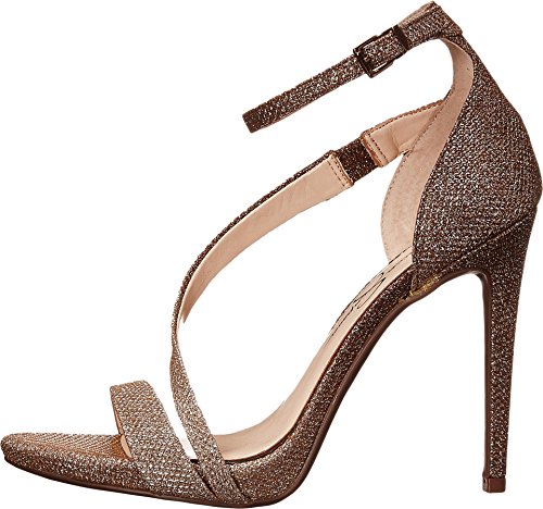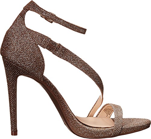 -. Feature : Glamorous dress sandal featuring asymmetric strap across vamp and covered stiletto heel / Wrap-around adjustable ankle strap with buckle closure