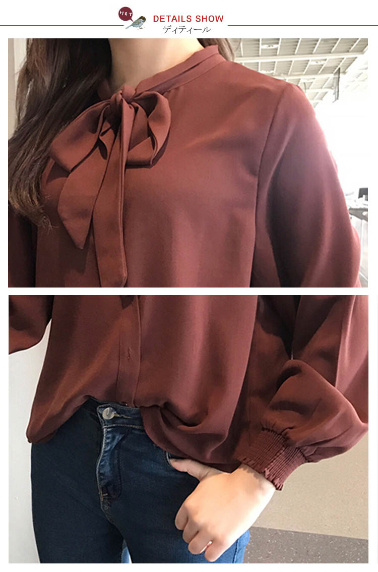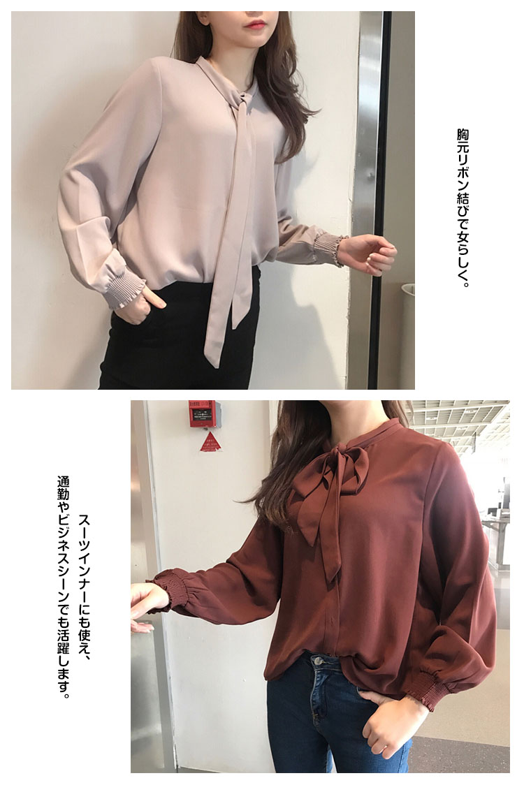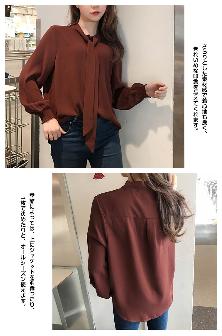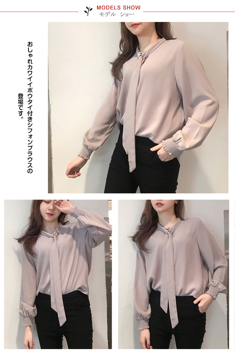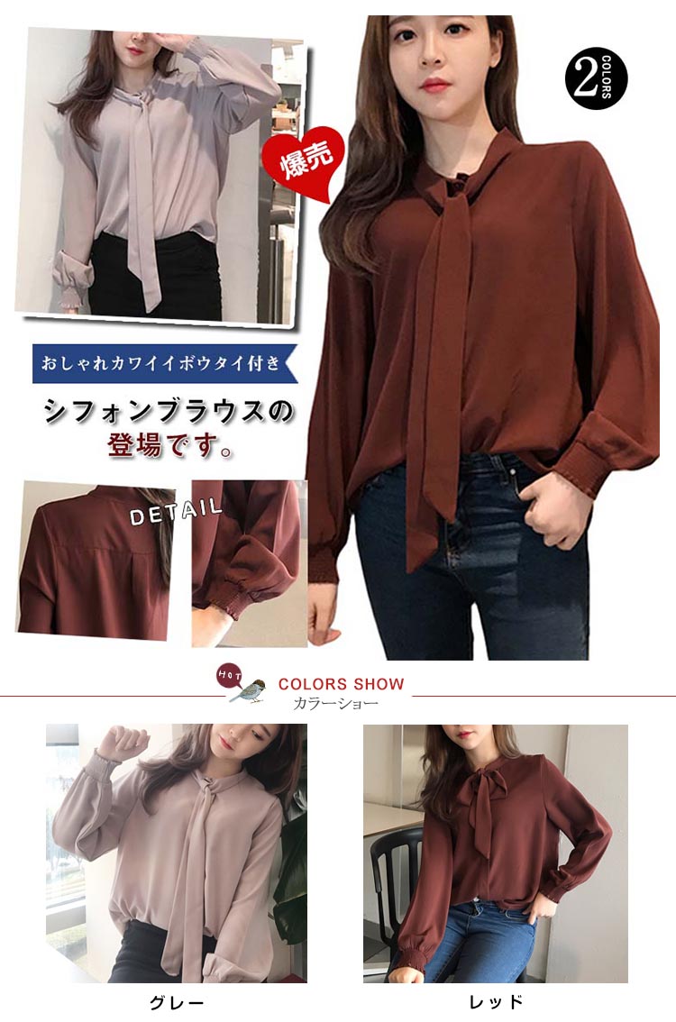 | おしゃれカワイイボウタイ付きシフォンブラウスの登場です。胸元リボン結びで女らしく。スーツインナーにも使え、通勤やビジネスシーンでも活躍します。さらりとした素材感で着心地も良く、きれいめな印象を与えてくれます。季節によっては、上にジャケットを羽織ったり、1枚で決めたりと、オールシーズン使えます。 | |