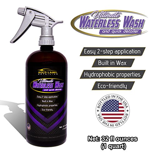 Ultimate Waterless Wash and Quick Detailer is an essential product to always have in your Vehicle. Keep this in your trunk and always be ready for that spontaneous photo shoot. With built in wax and hydrophobic properties, you will spend less time cleaning your car, and more time enjoying its show car finish. Directions: Focus on one panel or 2'x2' at a time. Liberally spray the Ultimate Wash and Quick Detailer on the car. We suggest starting from the roof and working your way down. Using a clean microfiber towel, wipe off the sprayed area with horizontal passes. Using a fresh microfiber towel, make another pass, this time buffing the newly cleaned panel. this will help to activate the waxes in the product and give you the hydrophobic properties. Repeat this process on the entire car, and don't forget, it can also be used on glass, mirrors, and windows!Feature