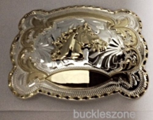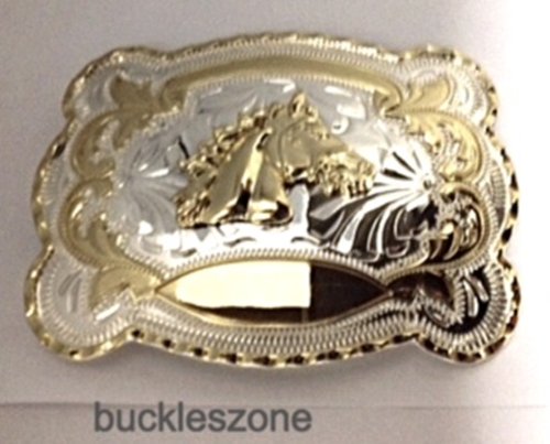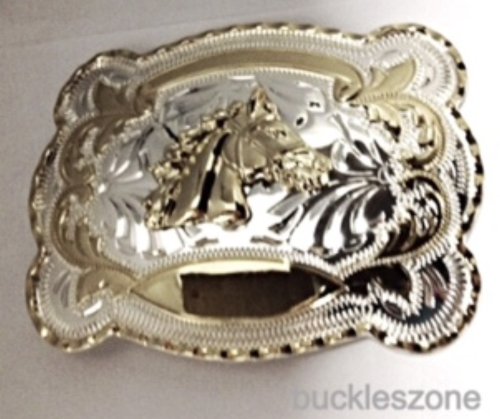 Horse Cow Boy Rhinestone Jumbo 3d Western Gold and Silver Finishing Belt Belt Buckle