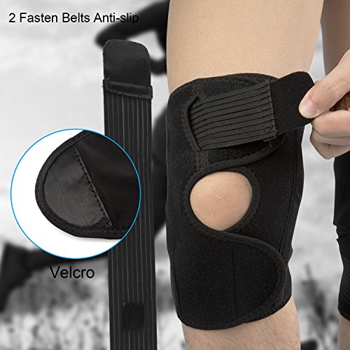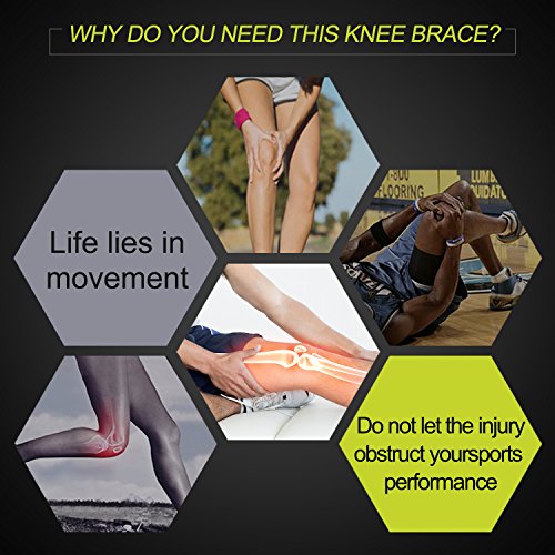 -. Feature : Open Patella Design reduces pressure on knee-joint during intense exercise or recovery; effectively relieves acute & chronic knee pain from arthritis, strains, sprains, and fatigue; ideal for post-surgery recovery or preventing sports injuries. / Comfortable & Improve Mobility:With soft material , you can move easily without any cumbersome and stuffiness,be more comfortable while wearing Speeds Up Recovery - High quality breathable neoprene creates heat retention helping with the recovery process and increase blood circulation. / Speeds Up Recovery - High quality breathable neoprene creates heat retention helping with the recovery process and increase blood circulation. / Extra Strap Besides the strap in the knee support, there is an extra strap that you can use to adjust it according to your size and make it non-slip. / The soft fabric spandex is bibulous and good breathable, protect the leg and knee from pulling during in outdoor activities such as running,basketball, football,cycling, golf.