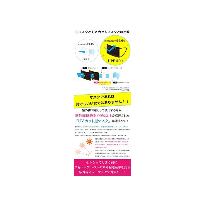 원본상품명:UVカットマスク UVカット率99%以上の?マスク【UPF50+】 5枚入り(個包?)