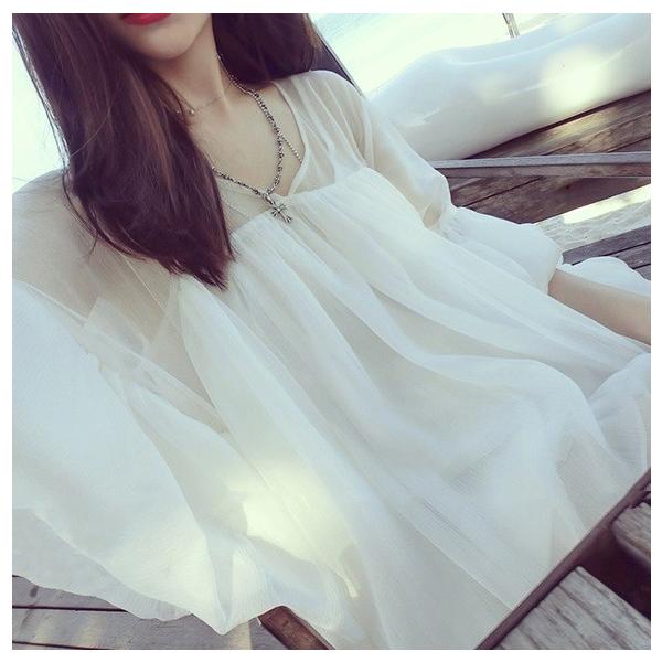 透けたレースのふんわりフリルがとっても素敵なチュニック☆ショートパンツと合わせると、ワンピースのように見えます♪【カラー】ホワイト【サイズ】【S】袖丈47/着丈61(cm)【M】袖丈50/着丈63(cm)【L】袖丈53/着丈65(cm)※製品により多少の誤差が生じる場合がございます。【素材】綿・ポリエステル 【ご使用上の注意】着用に問題のない製法のほつれ、商品の性格上、開封された商品・一度でも着用されました商品の返品・交換は一切お受け致しません。イメージと違う、サイズが合わない等の理由での返品は一切受け付けておりません。購入後のサイズ交換は対応しておりません。生産終了後すぐ発送しているため匂いがある場合がございます。ご了承ください。【生産国】made in china※商品はご注文を頂いてから2週間前後の到着となります。