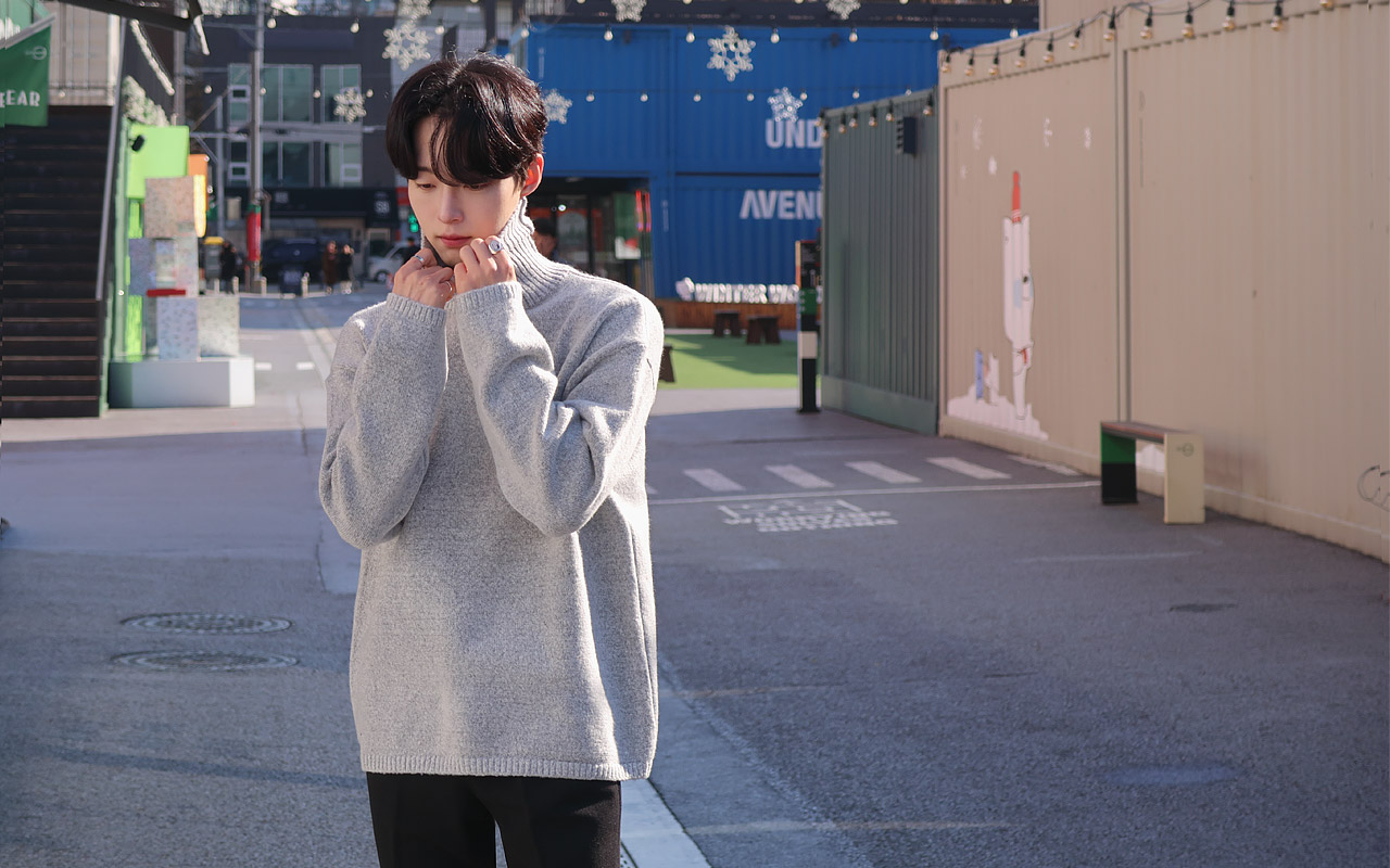 올이 굵직한 벌룬핏의 터틀넥 니트예요FABRIC INFO