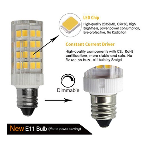 - Dimmable; Input voltage: 110V/120V/130V; Light Color:Daylight 6000K; Base type: Mini Candelabra Base E11;ATTENTIONS:This is E11 base , not e12 base, please make sure you light fixture base before purchase.