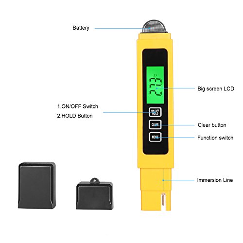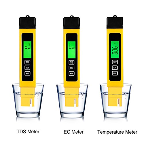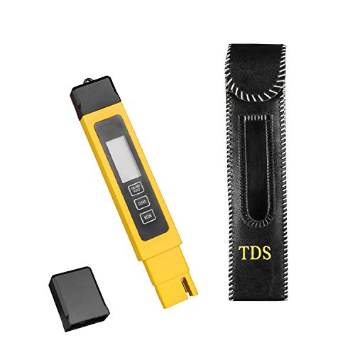 TBTeek Digital TDS EC Meter Professional Quality Water Tester and Temperature Meter with 0-9999 ppm Measurement Mini +/-2% Range Yellow and Premium Protective Leather Case