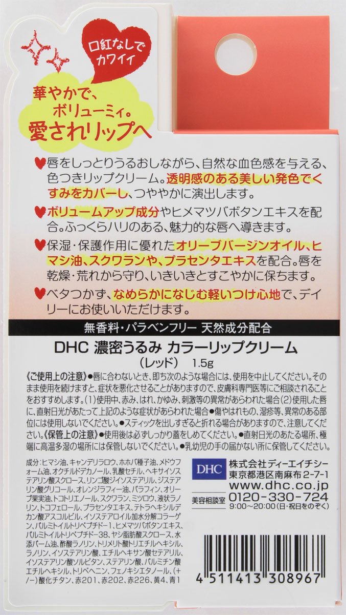 唇をしっとりうるおしながら、自然な血色感を与える、色つきリップクリームです。透明感のある美しい発色でくすみをカバーし、つややかに演出します。ボリュームアップ成分やヒメマツバボタンエキスを配合し、ふっくらハリのある、魅力的な唇に導きます。保湿・保護作用に優れたオリーブバージンエキス、ヒマシ油、スクワランや、プラセンタエキスを配合し、唇を乾燥・荒れから守り、いきいきとすこやかに保ちます。ベタつかず、なめらかになじむ軽いつけ心地で、デイリーにお使いいただけます。